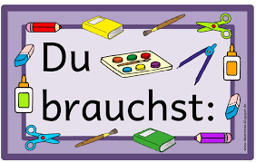 - Buntstifte (mindestens: gelb, orange, rot, blau, grün, schwarz, braun)
