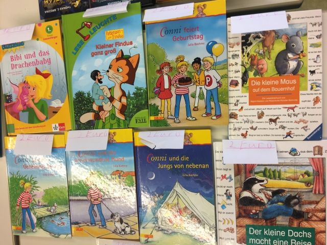 Die Kinder bringen von zuhause Bücher und Spiele mit. Die Klassen bereiten am Morgen im Klassenzimmer Verkaufsstände vor, an welchen jedes Kind seine eigenen Bücher und Spiele verkauft. Die Schüler behalten am Ende ihre Einnahmen. Die Bücher und Spiele sollten zuhause mit Preisschildchen versehen werden. Damit der Verkauf auch für die jüngeren Schüler erleichtert wird, bitten wir Sie nur ganze Beträge (1 Euro, 2 Euro…) zu verwenden. Selbstverständlich sind die Lehrkräfte beim Verkauf behilflich. Möchte sich ihr Kind Bücher kaufen, so geben sie ihm bitte etwas Geld mit. Die Kinder dürfen selbstständig von Stand zu Stand schlendern und sich ihren neuen Lesestoff besorgen.