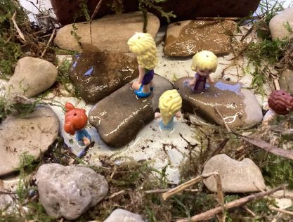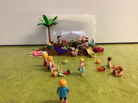 In Kunst hatten wir gerade das Thema: „Wir fotografieren wie Slinkachu“. Slinkachu ist ein international bekannter Fotograf, Streetart-Künstler und Blogger, der in London (England) lebt. Er fotografiert Dinge, die er einfach auf dem Boden findet. Um geeignete Stellen zu finden, geht Slinkachu oft stundenlang spazieren. Wenn der Fotograf eine geeignete Stelle gefunden hat, baut er seine handbemalten Modellbaufiguren auf und positioniert sie richtig. Dann macht Slinkachu zwei Fotos. Das erste Foto zeigt eine Nahaufnahme der Figuren und das zweite Foto ist eine Art Suchbild. Hier fotografiert Slinkachu die ganze Umgebung und man muss wirklich gut hinschauen, um die Figuren zu finden. Wenn er dies getan hat, überlässt der Fotograf die Figuren ihrem Schicksal.